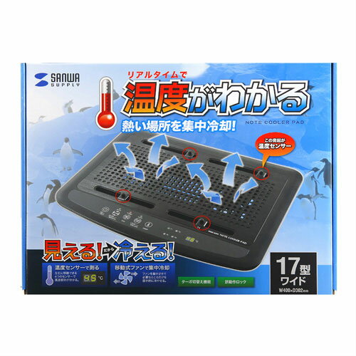 【訳あり 新品】【サンワサプライ】ノートPCクーラー(温度計付き) ※箱にキズ、汚れあり